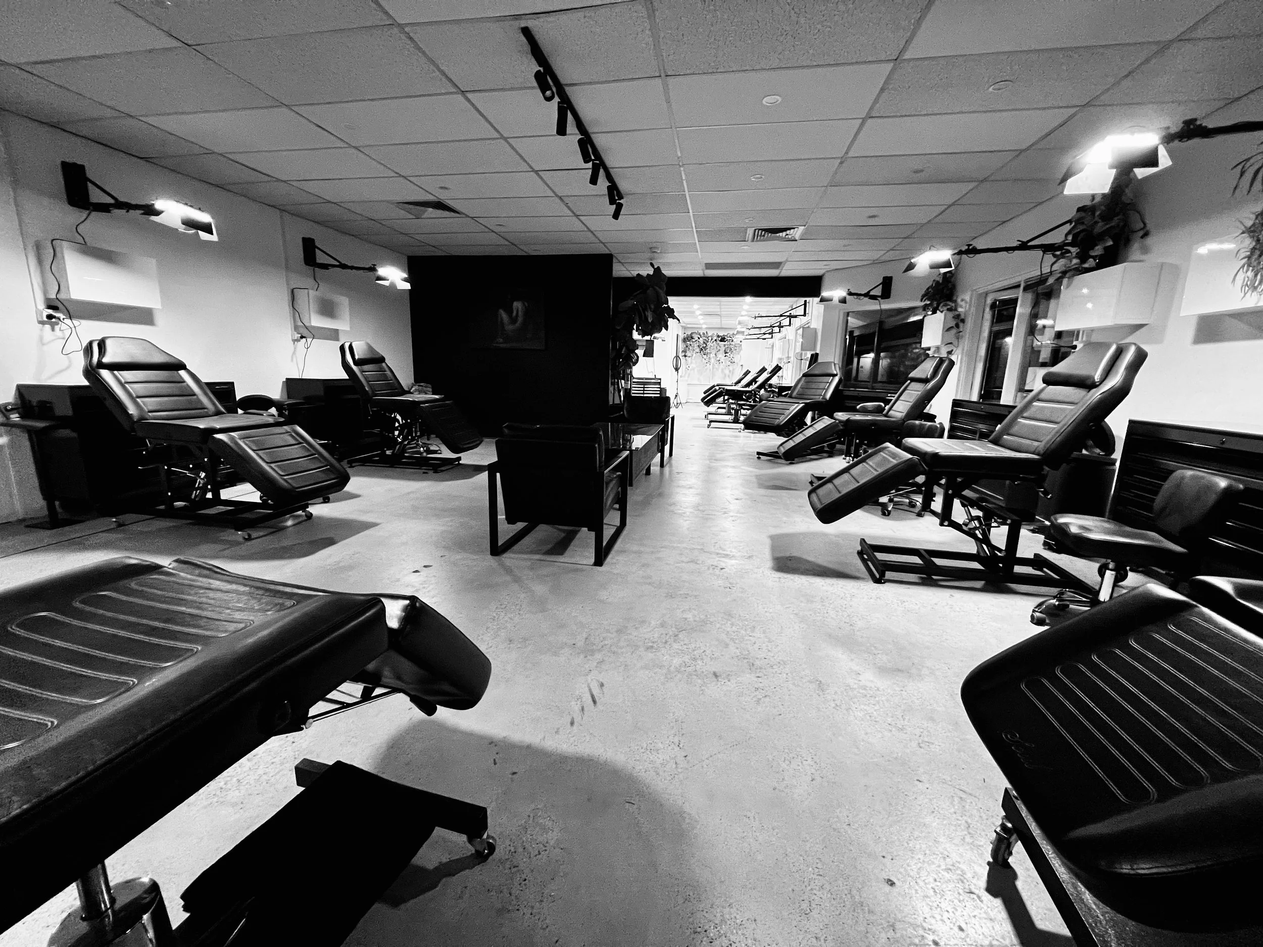 - All armrests in the studio are communal, and there are tattoo trays on wheels available for use. Additional ring lights are also available.