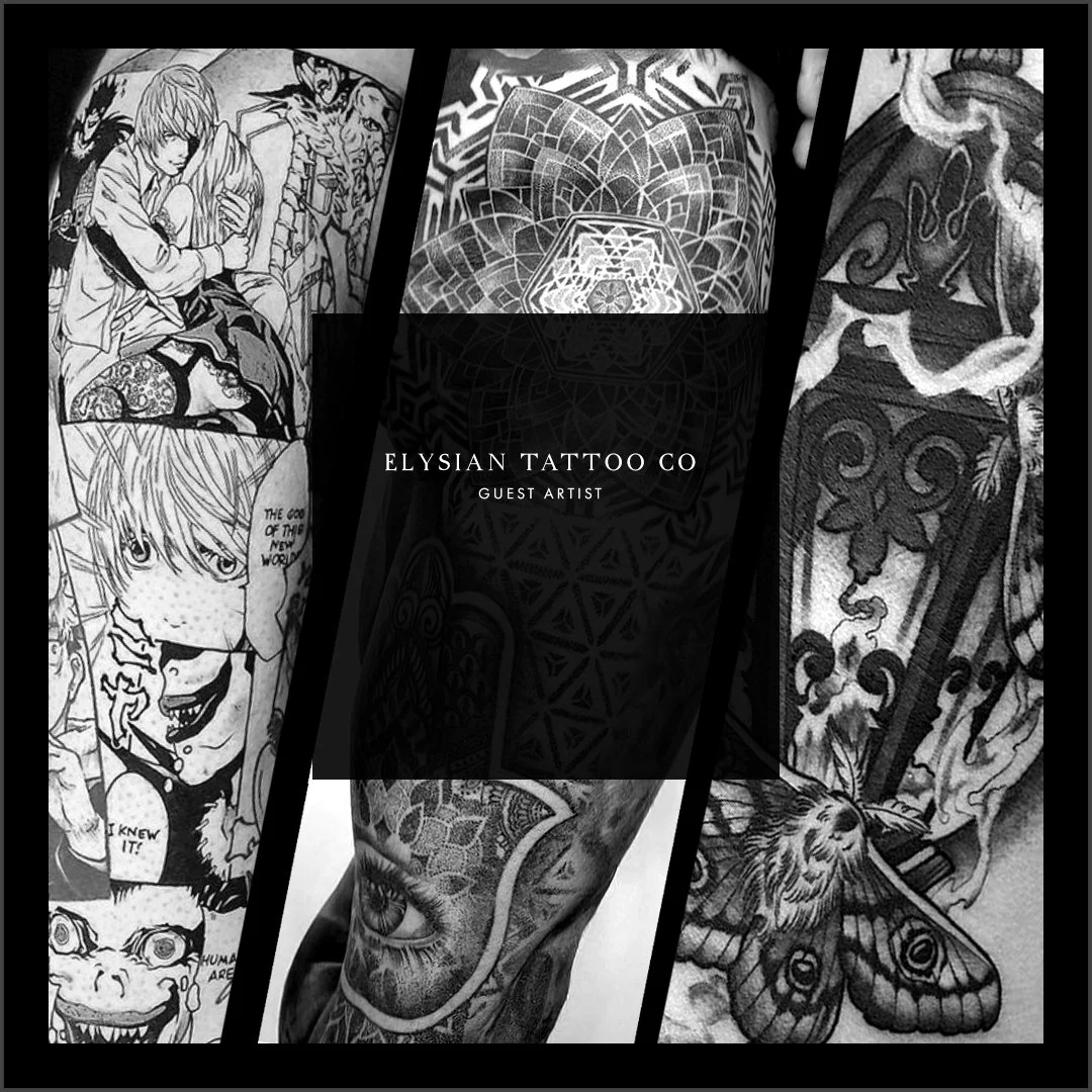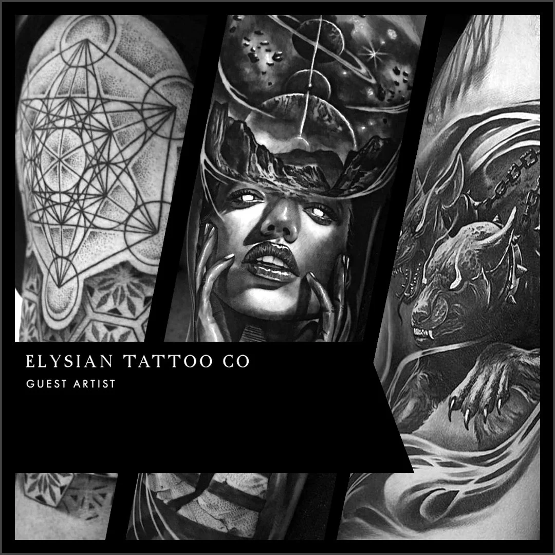 Please be aware that Elysian Tattoo Co holds no liability for guest artists or the work they independently produce. The studio cannot guarantee the quality of their work, touch-ups, or the individual booking policies of guest artists.